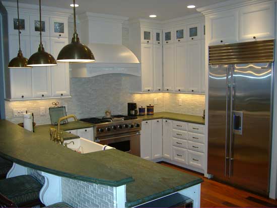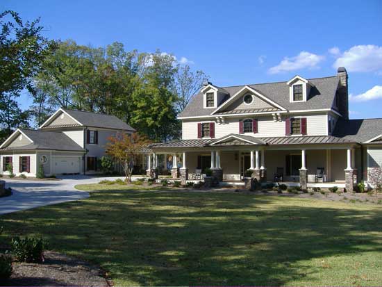 Another extreme makeover, we leveled and repaired the foundation, reinstalled cement siding, reroofed, added a front and rear porch, added a stone patio with firepit, installed Ipe' floors, remodeled the kitchen and all the baths, replaced the windows and doors, rewired and re-plumbed, installed new landscaping, remodeled the guest house and garage, etc., etc. We basically rebuilt the existing structure. The homeowner wanted a "new" house but wanted to keep the integrity of the original structure intact.