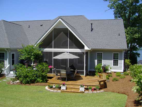 Here, we added an attached guest house/cart barn, enclosed a screened porch, added an additional screen porch and decking as well as added a fourth bedroom in the unfinished attic space.